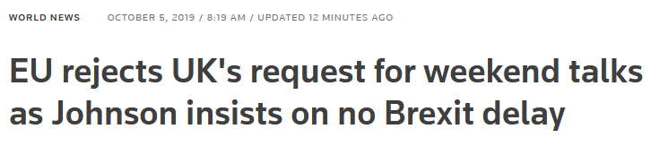 [國際新聞] 由於約翰遜不推遲英國退歐,歐盟拒絕與英國週末會談